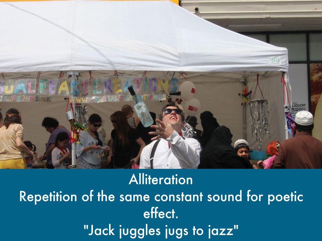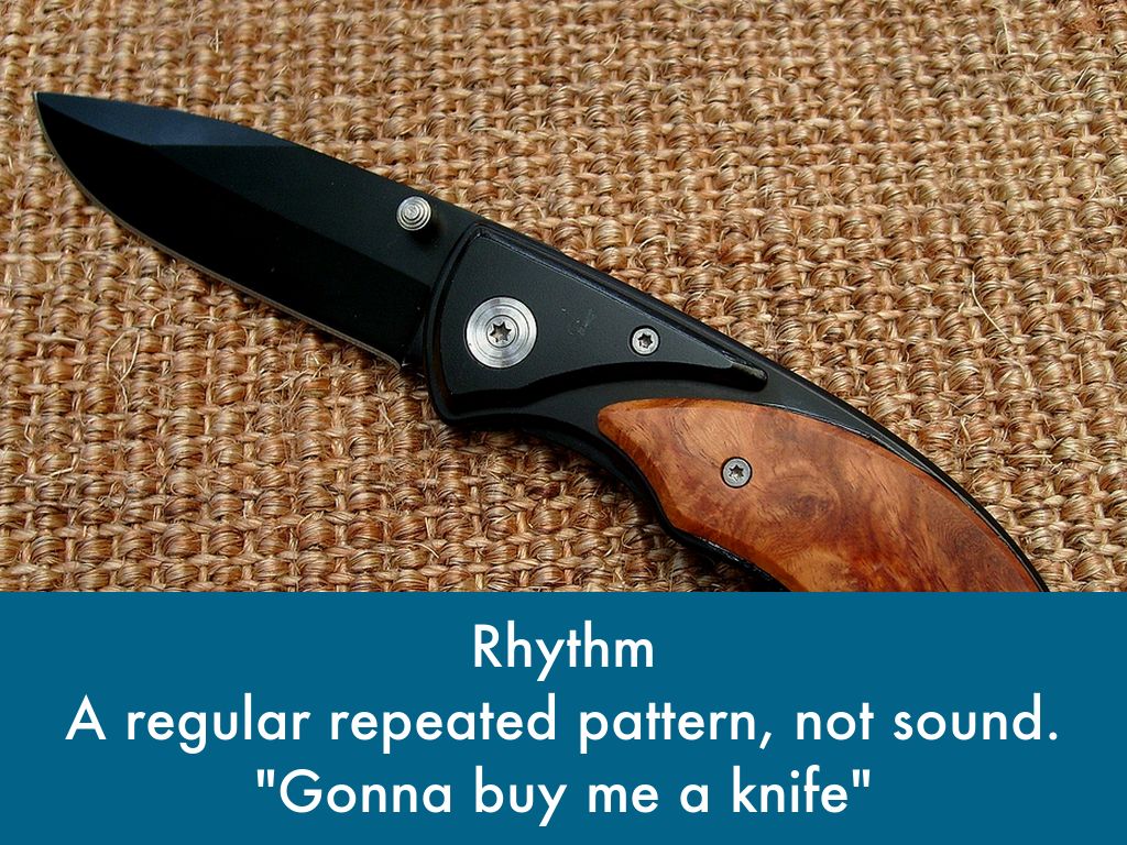 Repetition | Sounds, words and phrases repeated on purpose creates rhythm and emphasizes important ideas."A dog who barks is a dog who marks, a dog who bark is a dog who bites, a dog who barks is a dog who writes.