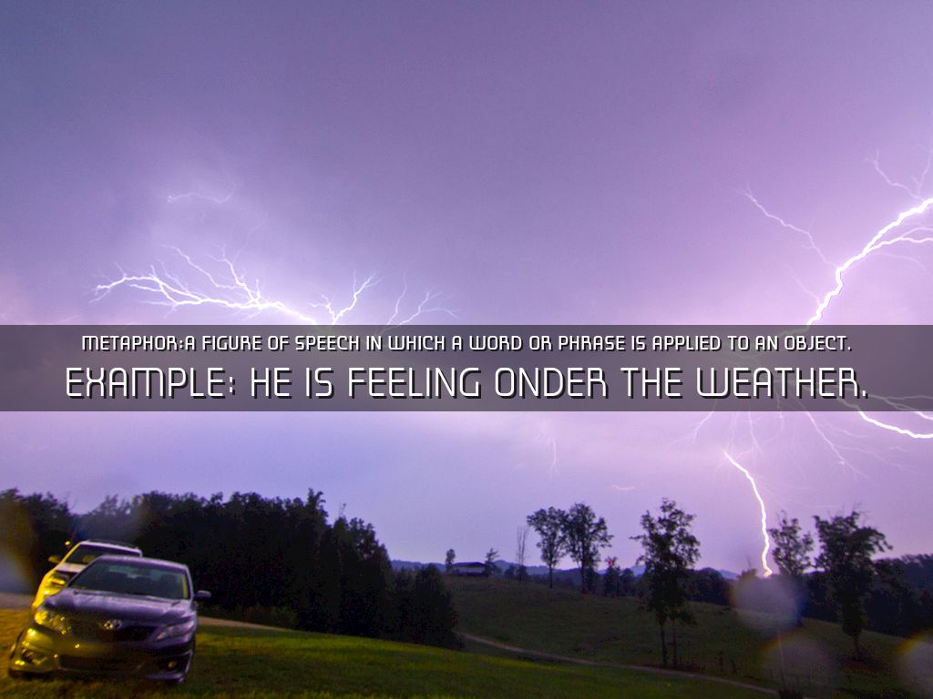 METAPHOR:A FIGURE OF SPEECH IN WHICH A WORD OR PHRASE IS APPLIED TO AN OBJECT.