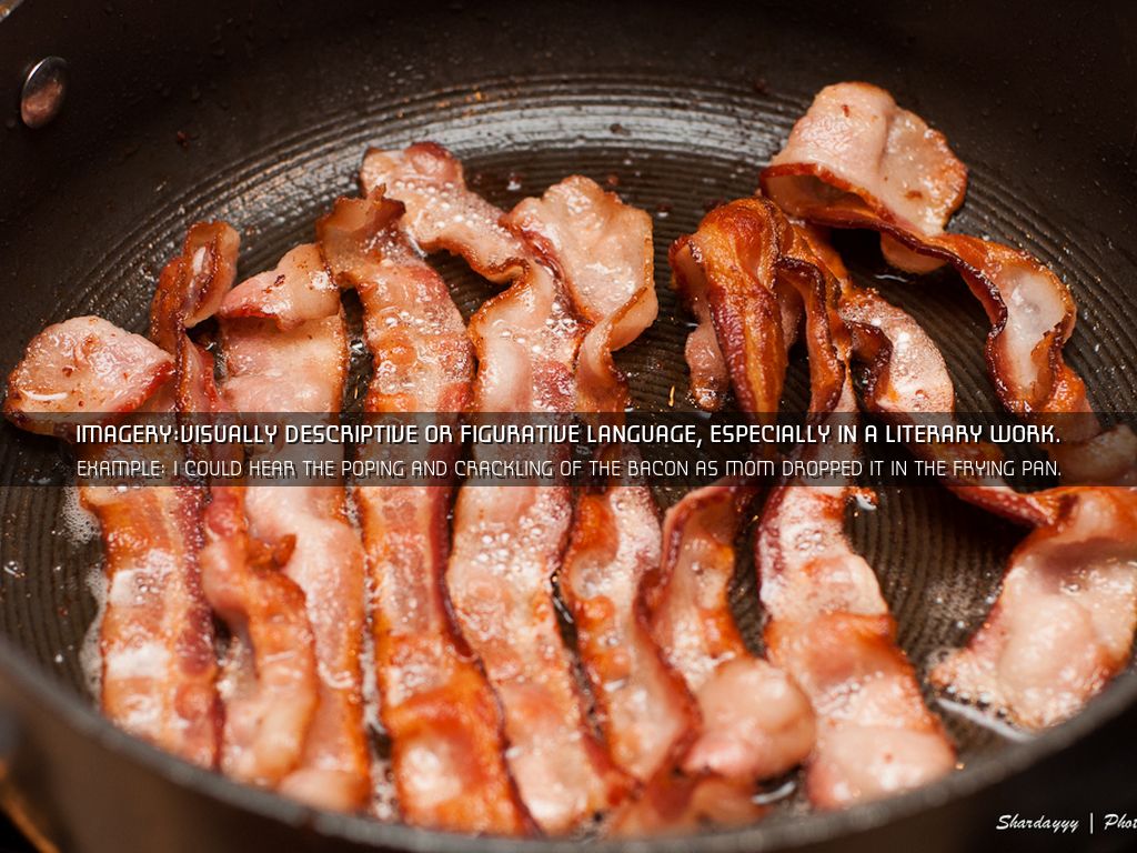 EXAMPLE: I COULD HEAR THE POPING AND CRACKLING OF THE BACON AS MOM DROPPED IT IN THE FRYING PAN.