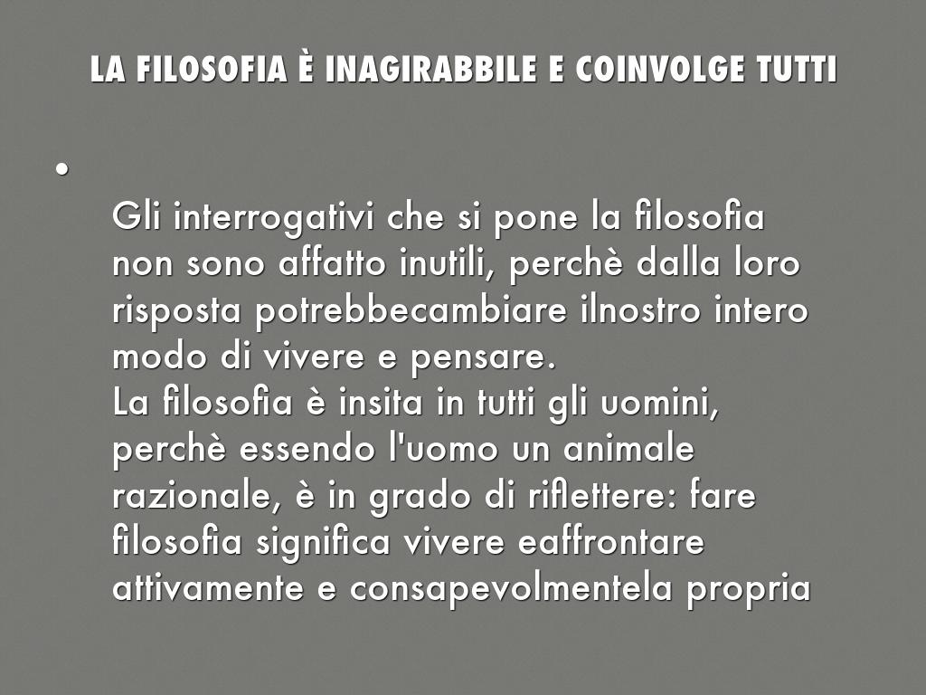 Gli interrogativi che si pone la filosofia non sono affatto inutili, perchè dalla loro risposta potrebbecambiare ilnostro intero modo di vivere e pensare.