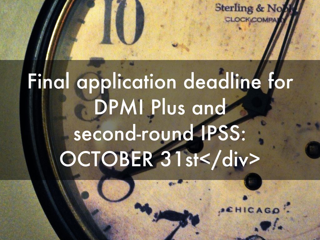 Final application deadline for DPMI Plus and second-round IPSS: OCTOBER 31st</div>