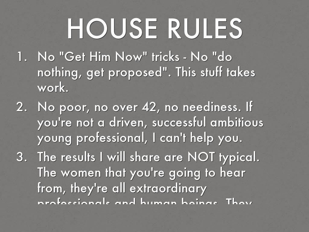 - No "Get Him Now" tricks - No "do nothing, get proposed". This stuff takes work.