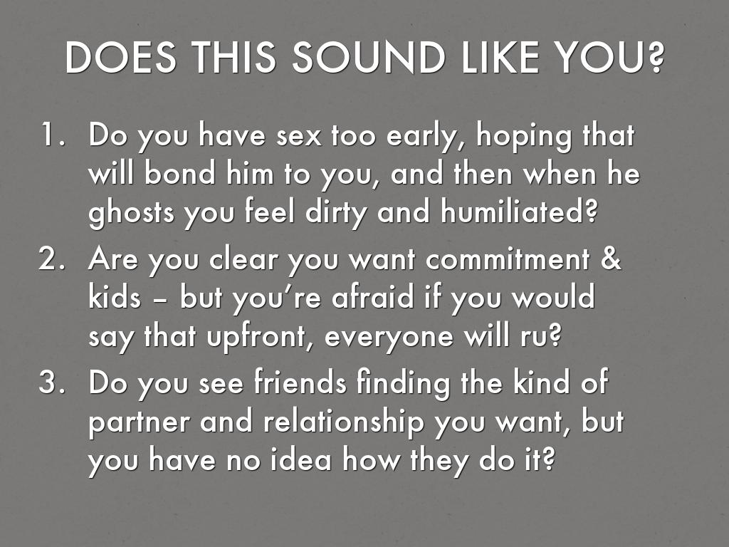 - Do you have sex too early, hoping that will bond him to you, and then when he ghosts you feel dirty and humiliated?