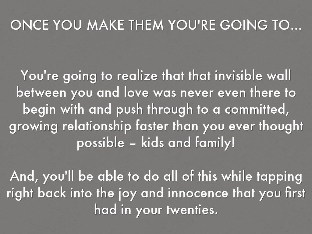 You're going to realize that that invisible wall between you and love was never even there to begin with and push through to a committed, growing relationship faster than you ever thought possible – kids and family!
