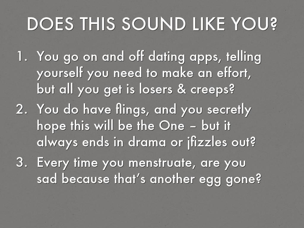 - You go on and off dating apps, telling yourself you need to make an effort, but all you get is losers & creeps?