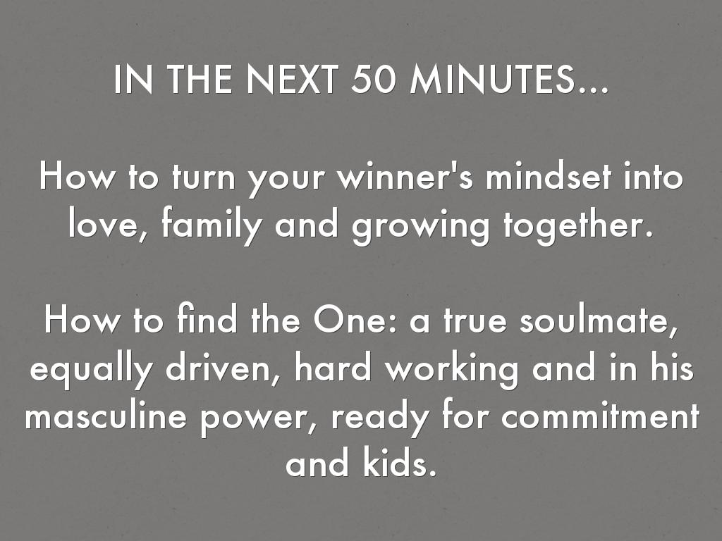 How to find the One: a true soulmate, equally driven, hard working and in his masculine power, ready for commitment and kids.