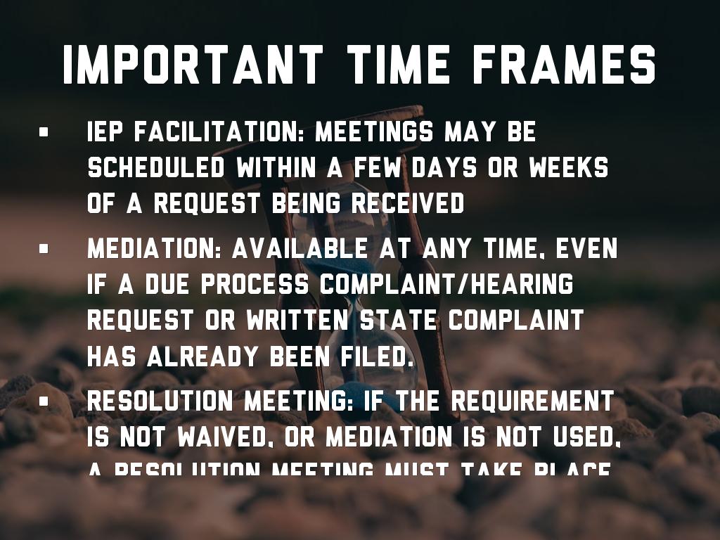 Iep Facilitation: Meetings may be scheduled within a few days or weeks of a request being received