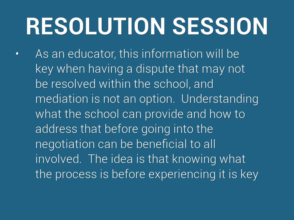 As an educator, this information will be key when having a dispute that may not be resolved within the school, and mediation is not an option. Understanding what the school can provide and how to address that before going into the negotiation can be beneficial to all involved. The idea is that knowing what the process is before experiencing it is key