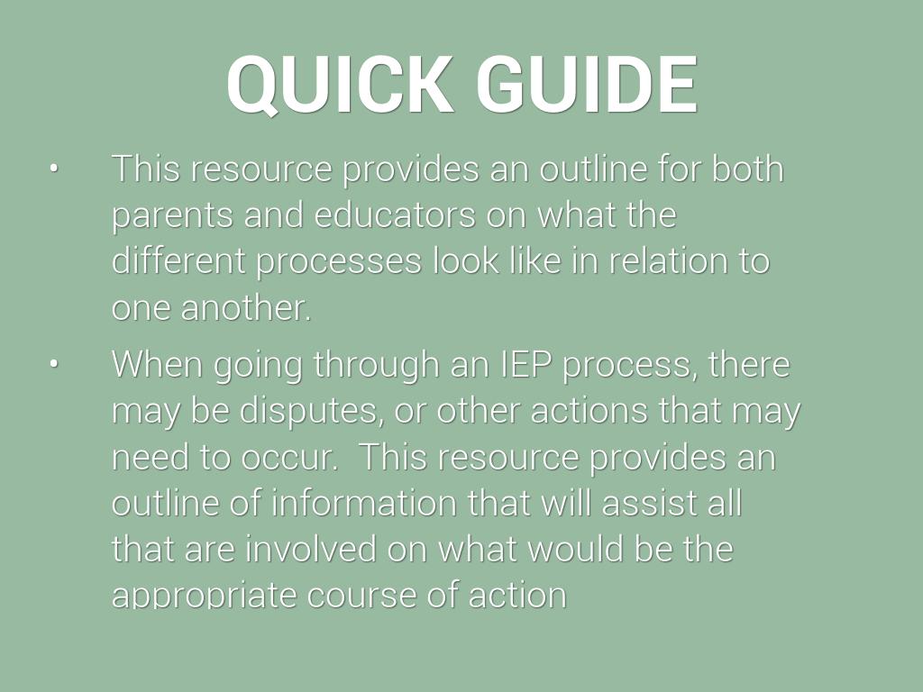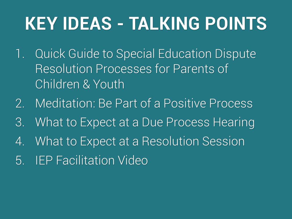 When going through an IEP process, there may be disputes, or other actions that may need to occur. This resource provides an outline of information that will assist all that are involved on what would be the appropriate course of action