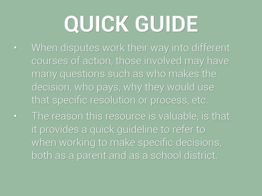 The reason this resource is valuable, is that it provides a quick guideline to refer to when working to make specific decisions, both as a parent and as a school district.