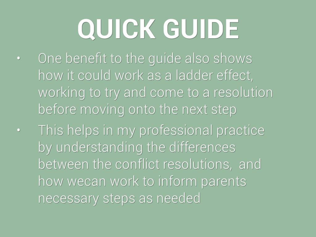One benefit to the guide also shows how it could work as a ladder effect, working to try and come to a resolution before moving onto the next step