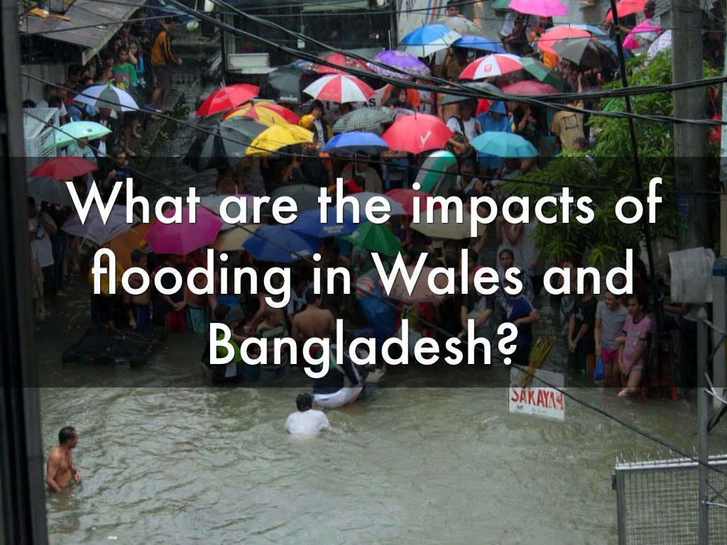 What are the impacts of flooding in Wales and Bangladesh?