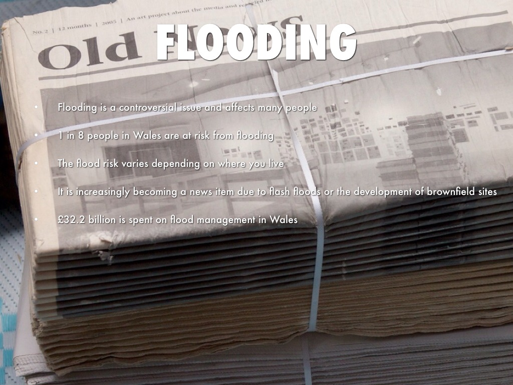 Flooding is a controversial issue in many countries and affects many people; their homes may be flooded or people may experience travel disruption. One in eight people in Wales are at risk from flooding and although the flood risk varies depending on where you live, it is increasingly becoming a news item, sometimes due to huge flash floods or because of the increasing development of brownfield sites. We hear of budget cuts in the news and some may argue that the amount spent on flood management in Wales should not be cut, but increased, to account for the possible increase in flooding due to climate change and rising sea levels.