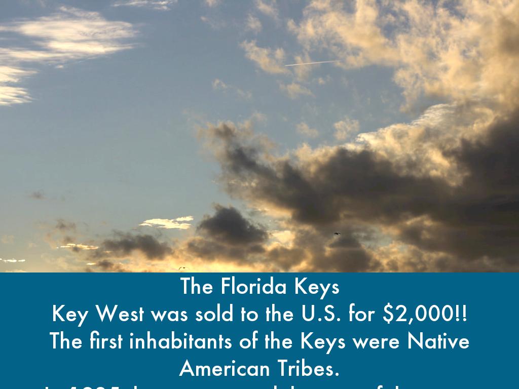 The Florida Keys Key West was sold to the U.S. for $2,000!! The first inhabitants of the Keys were Native American Tribes. In 1935 they were struck by one of the worst hurricanes known to ever hit the U.S.