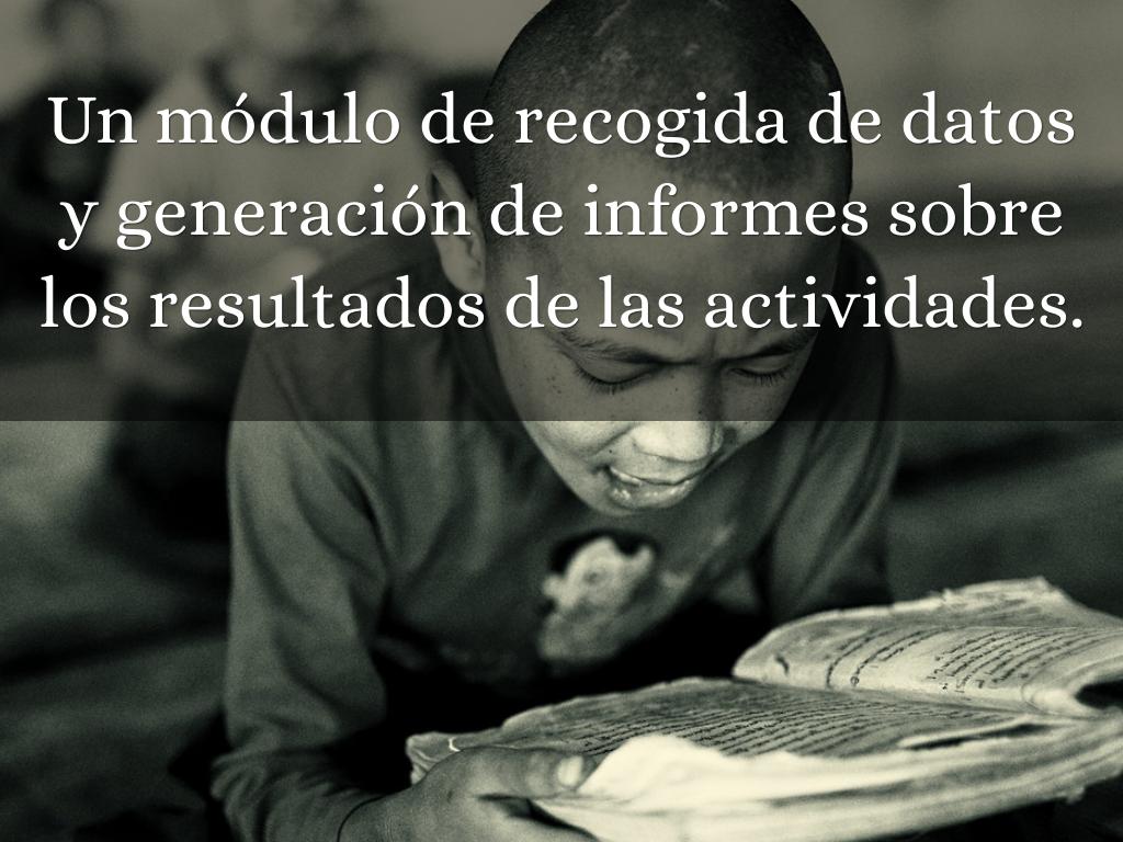 Un módulo de recogida de datos y generación de informes sobre los resultados de las actividades.