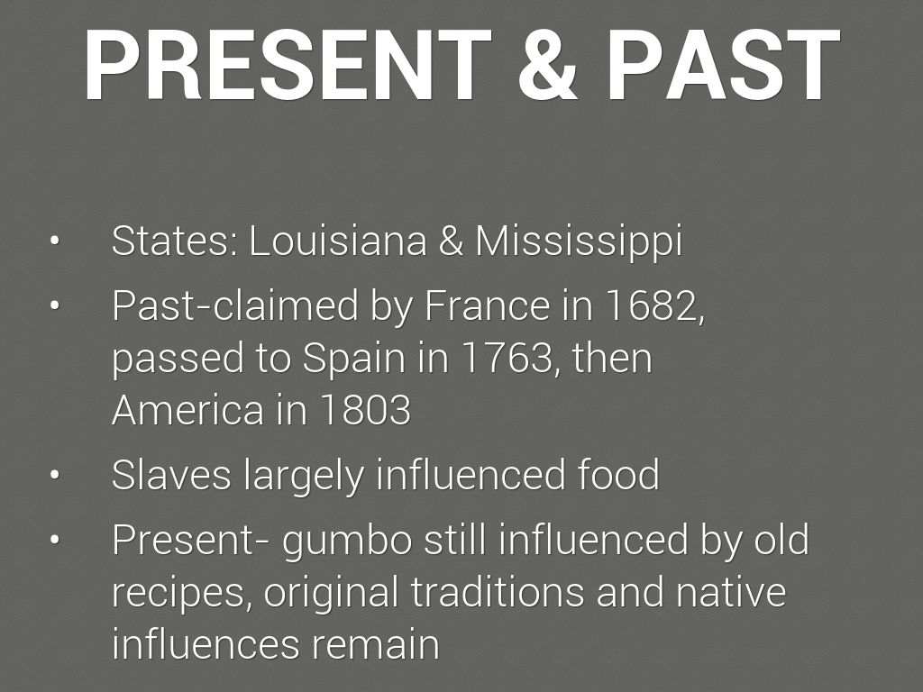 Present- gumbo still influenced by old recipes, original traditions and native influences remain