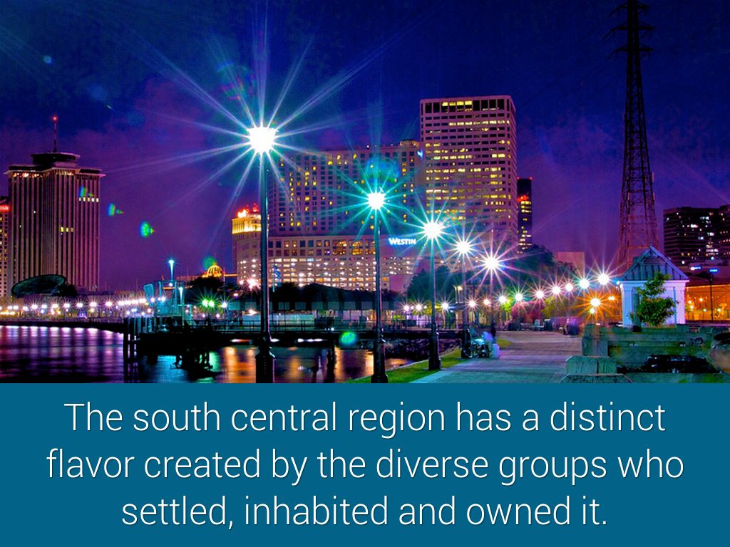 The south central region has a distinct flavor created by the diverse groups who settled, inhabited and owned it.