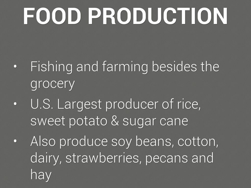 U.S. Largest producer of rice, sweet potato & sugar cane