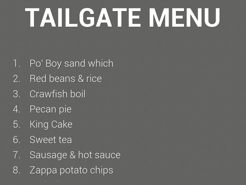 TAILGATE MENU