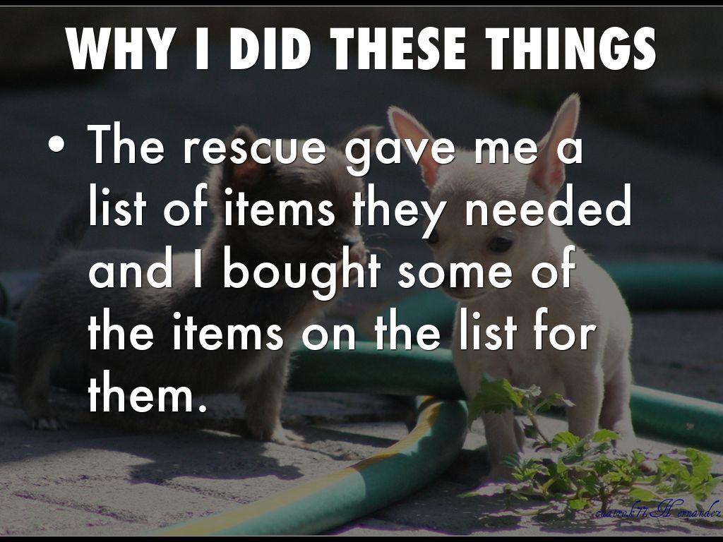 The rescue gave me a list of items they needed and I bought some of the items on the list for them.