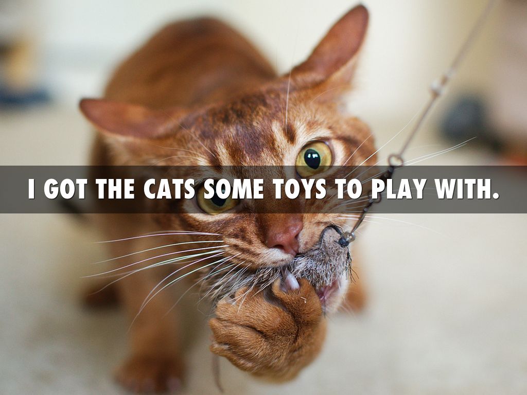 I GOT THE CATS SOME TOYS TO PLAY WITH.