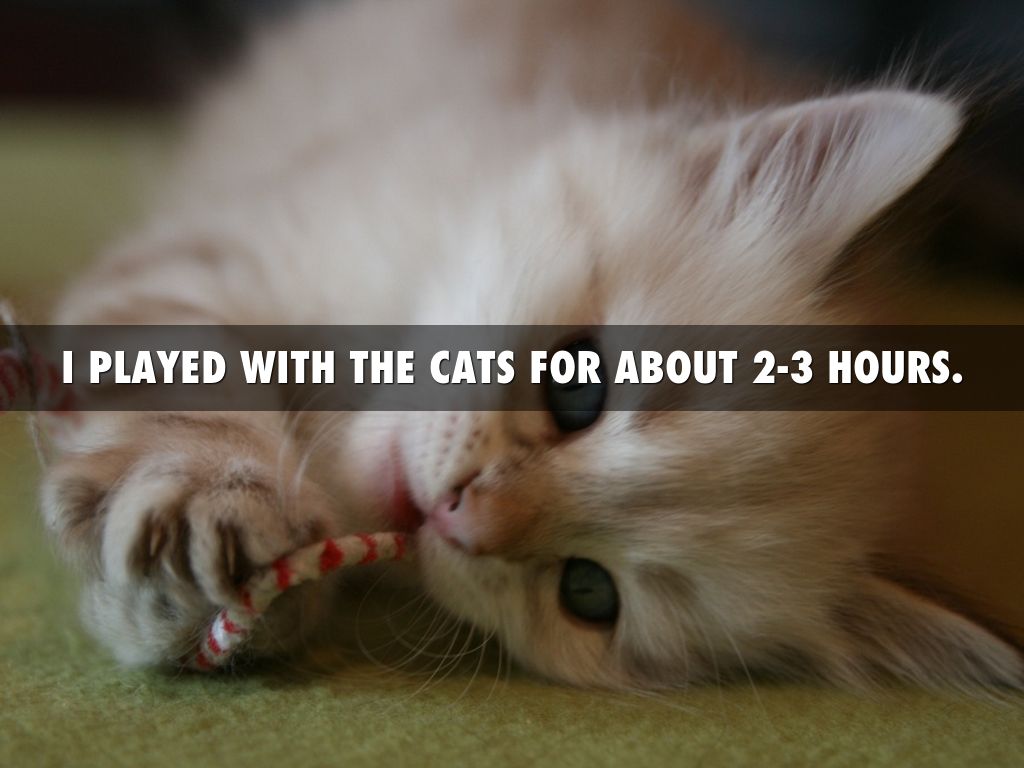 I PLAYED WITH THE CATS FOR ABOUT 2-3 HOURS.