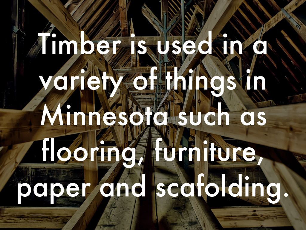Timber is used in a variety of things in Minnesota such as flooring, furniture, paper and scafolding.