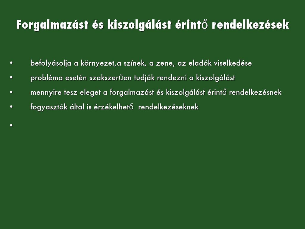 Forgalmazást és kiszolgálást érintő rendelkezések
