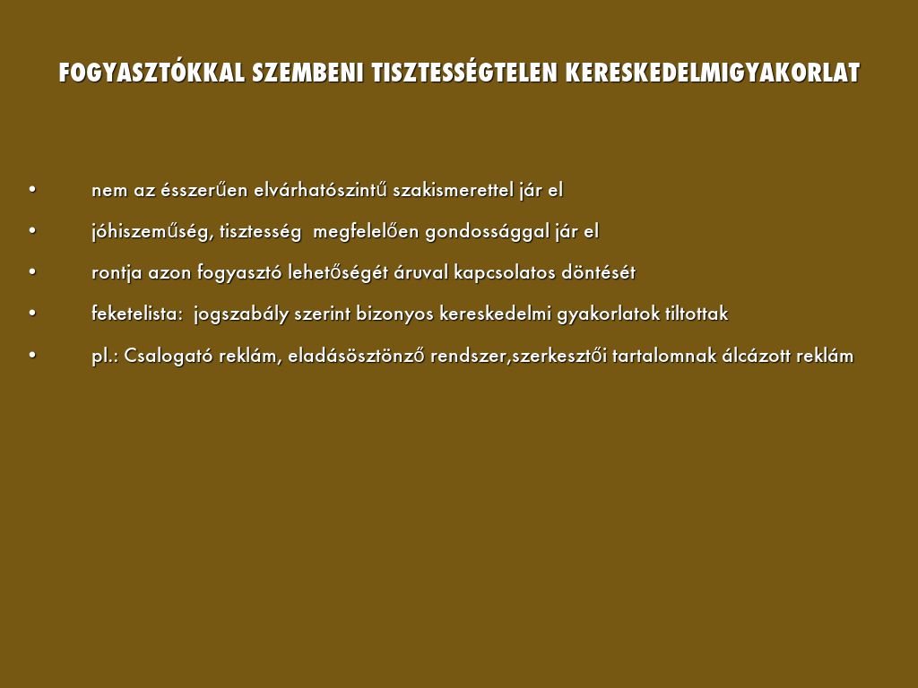 FOGYASZTÓKKAL SZEMBENI TISZTESSÉGTELEN KERESKEDELMI GYAKORLAT