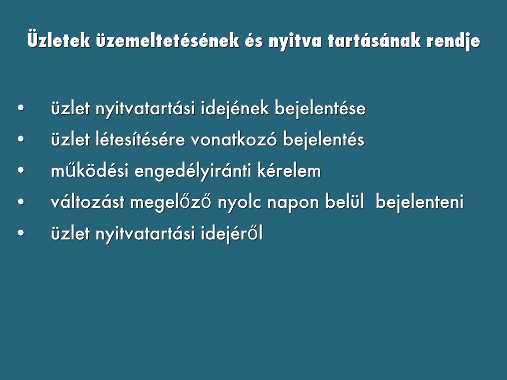 Üzletek üzemeltetésének és nyitva tartásának rendje