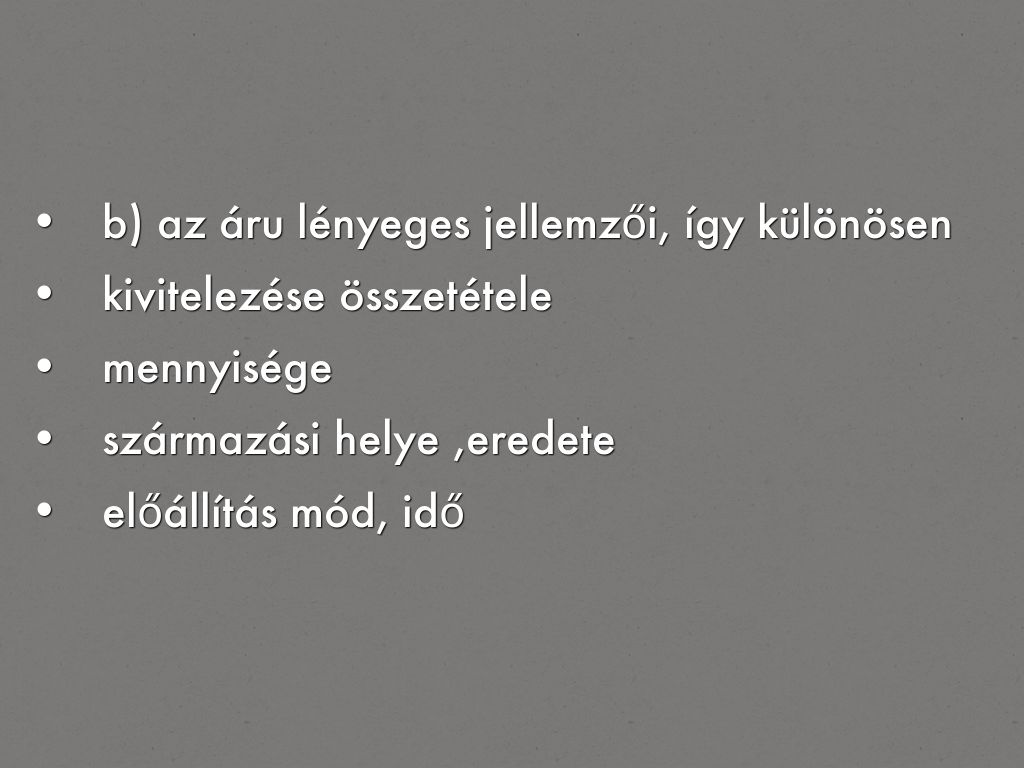 b) az áru lényeges jellemzői, így különösen