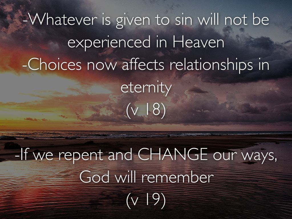 1 John 1:7-9 -We cannot lose our salvation, but we can still suffer from our sin on Earth -Cleanseth = continual -We will always sin, we are never too good to seek forgiveness -If we confess our sins, He will forgive