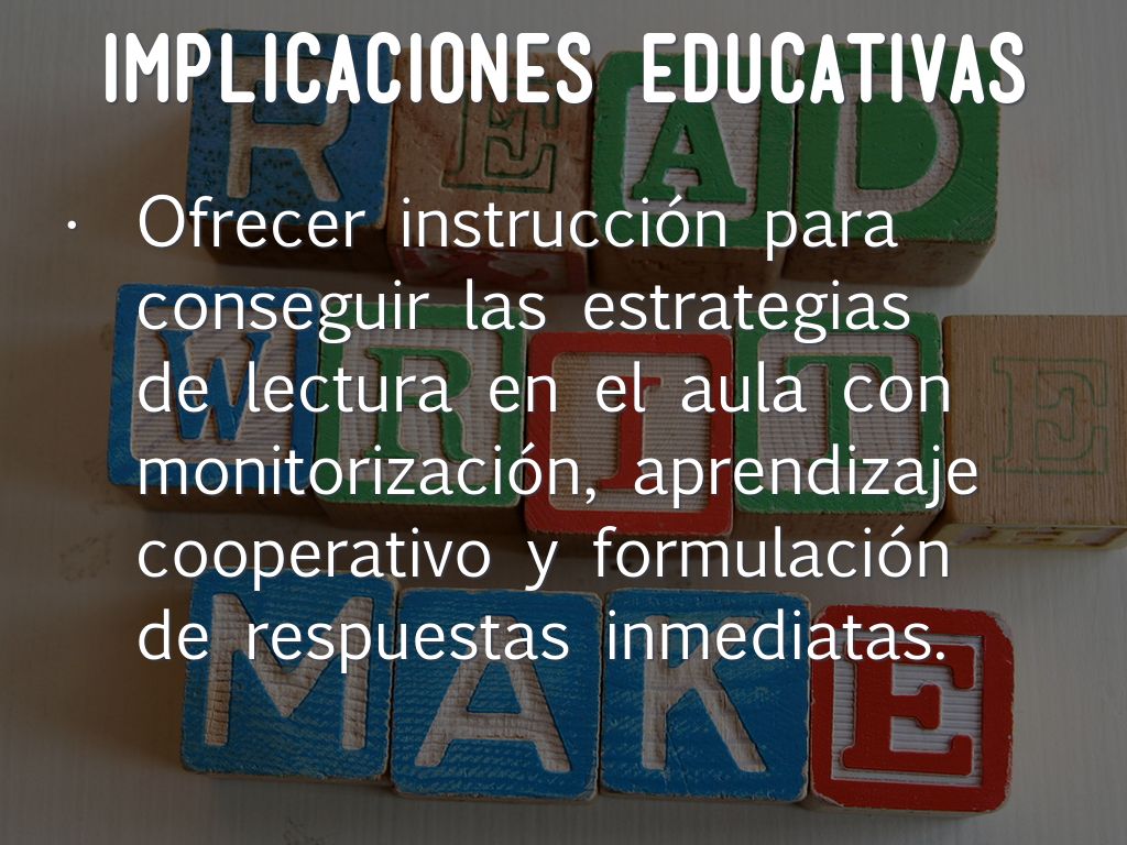 Ofrecer instrucción para conseguir las estrategias de lectura en el aula con monitorización, aprendizaje cooperativo y formulación de respuestas inmediatas.