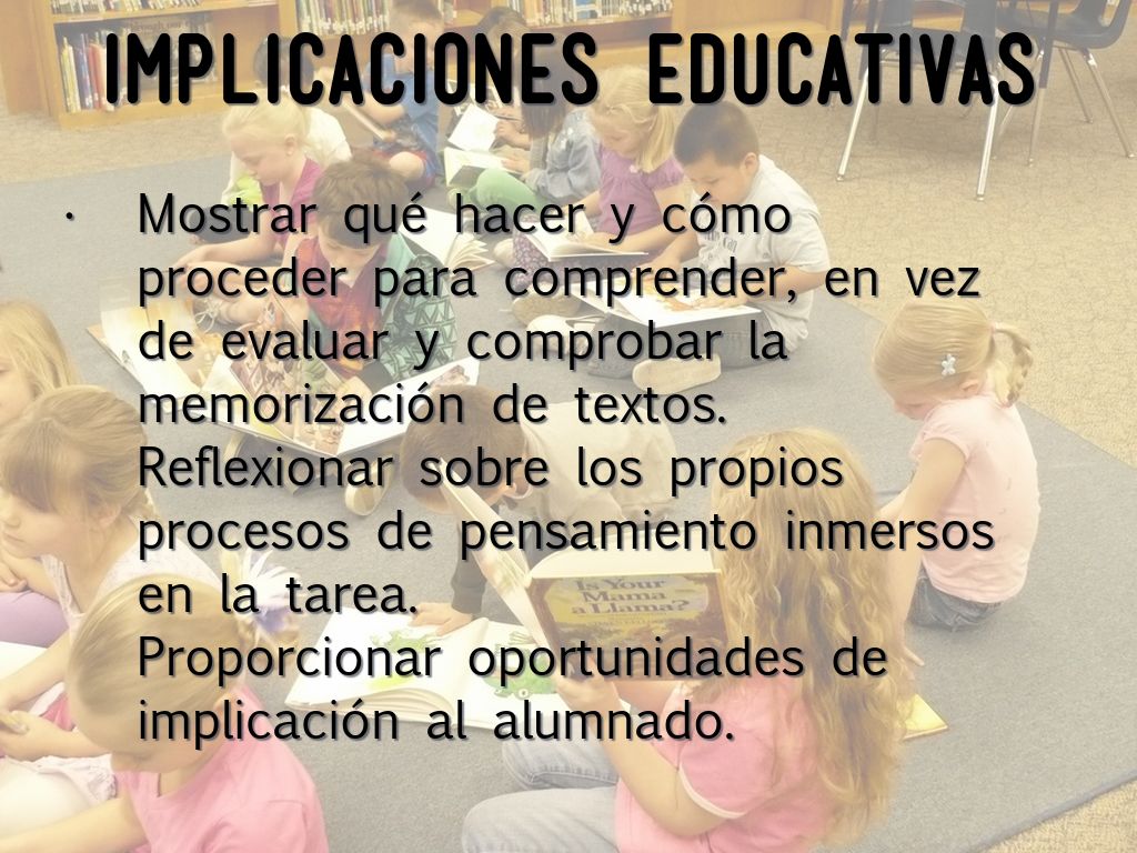 Mostrar qué hacer y cómo proceder para comprender, en vez de evaluar y comprobar la memorización de textos.