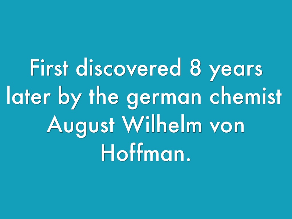 First discovered 8 years later by the german chemist August Wilhelm von Hoffman.