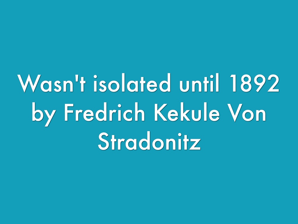 Wasn't isolated until 1892 by Fredrich Kekule Von Stradonitz