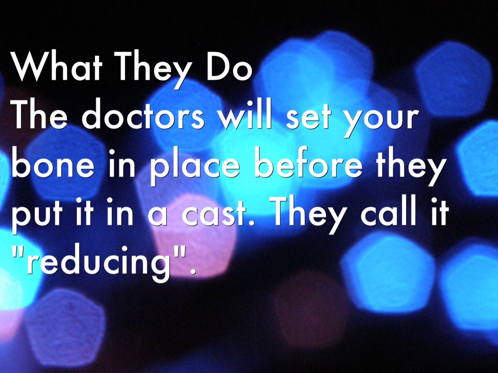 The doctors will set your bone in place before they put it in a cast. They call it "reducing".
