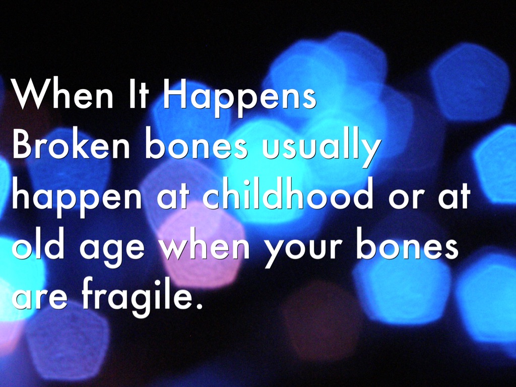 Broken bones usually happen at childhood or at old age when your bones are fragile.