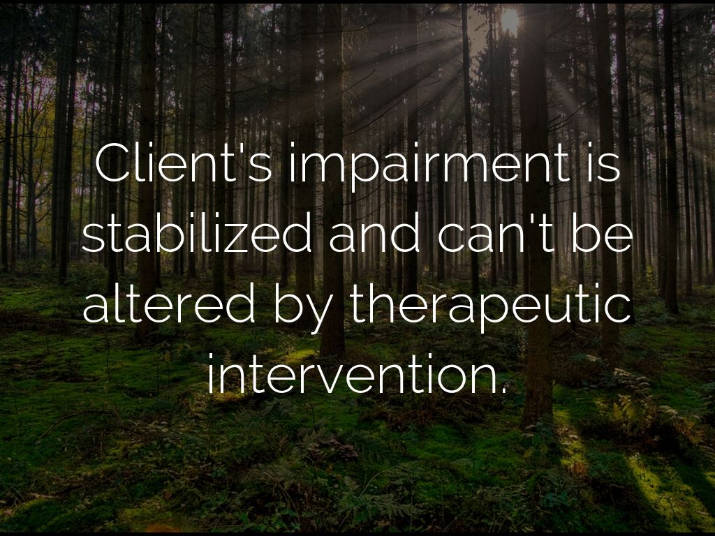 Client's impairment is stabilized and can't be altered by therapeutic intervention.