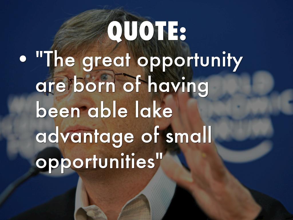 "The great opportunity are born of having been able lake advantage of small opportunities"