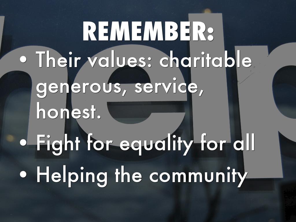 Their values: charitable generous, service, honest.