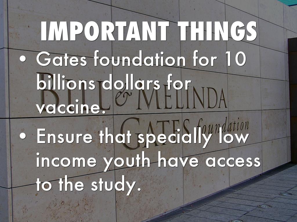 Gates foundation for 10 billions dollars for vaccine.