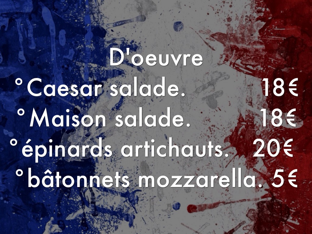 °épinards artichauts. 20€ °bâtonnets mozzarella. 5€
