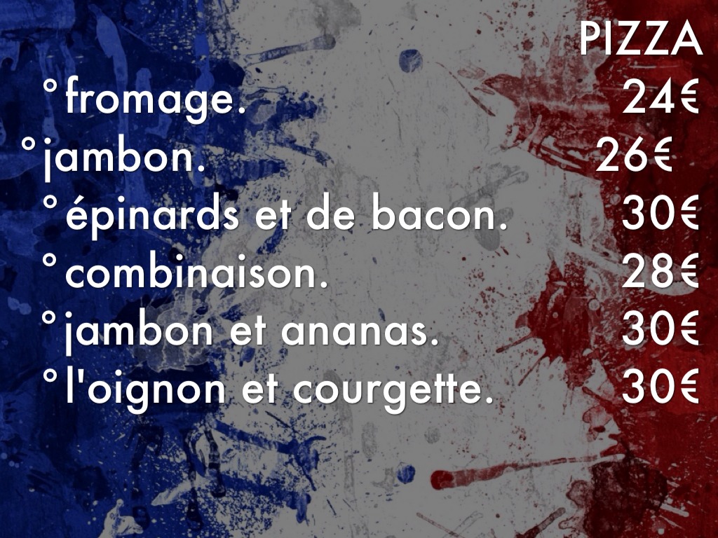 °jambon. 26€ °épinards et de bacon. 30€