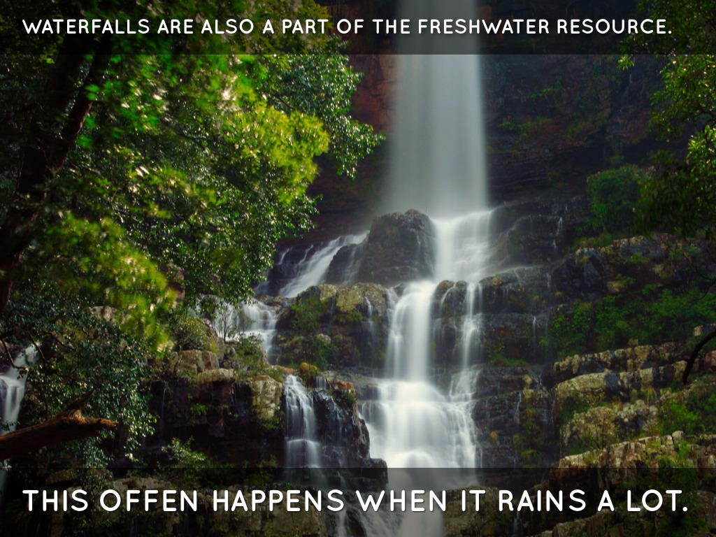 WATERFALLS ARE ALSO A PART OF THE FRESHWATER RESOURCE.