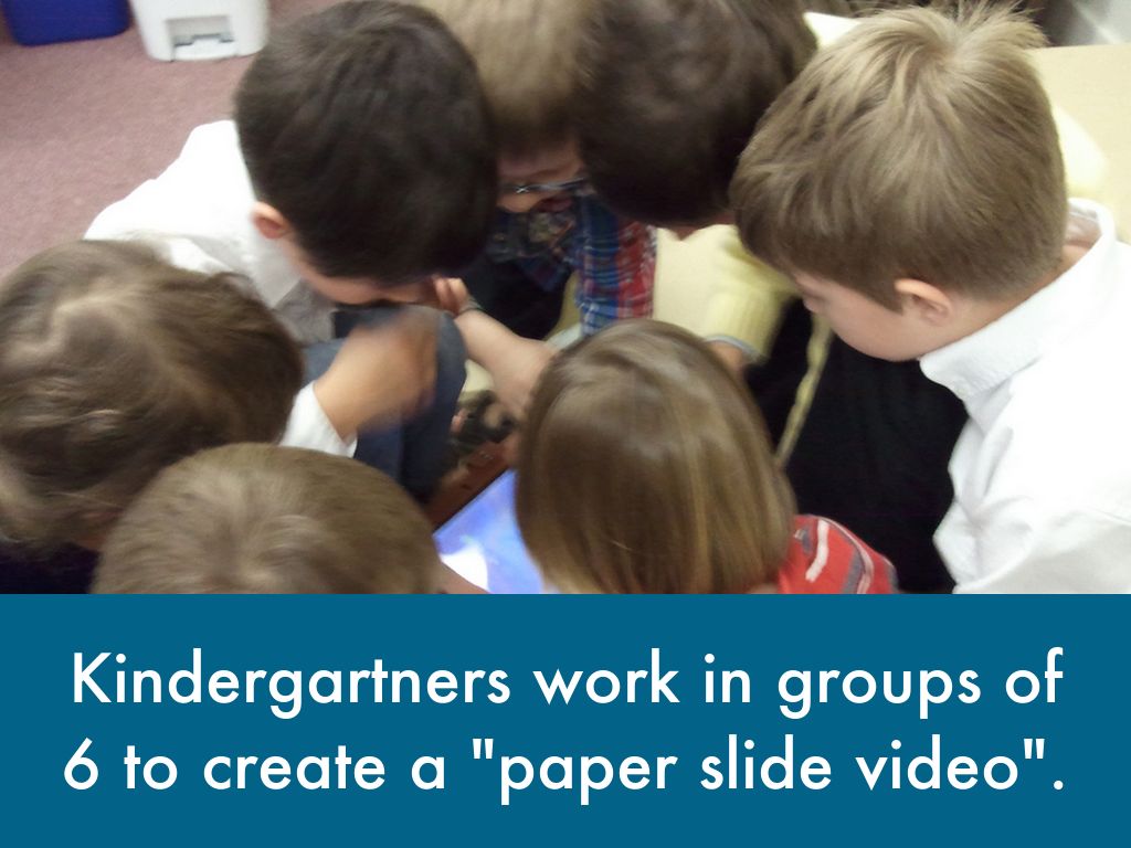 Kindergartners work in groups of 6 to create a "paper slide video".