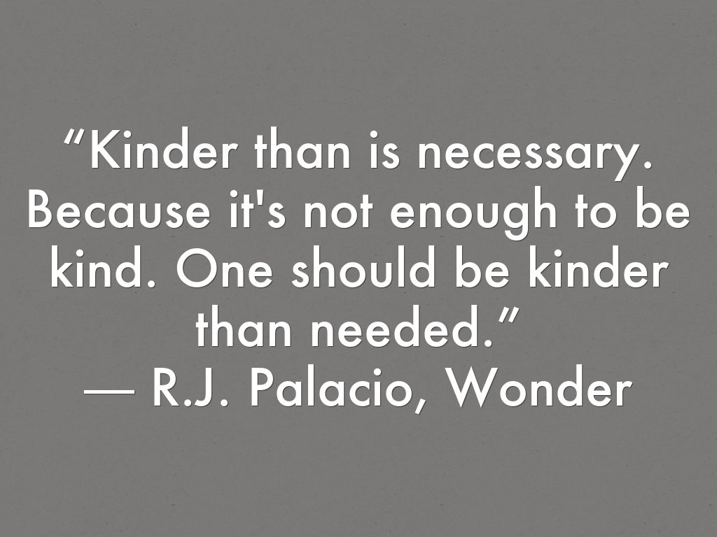 “Kinder than is necessary. Because it's not enough to be kind. One should be kinder than needed.”
