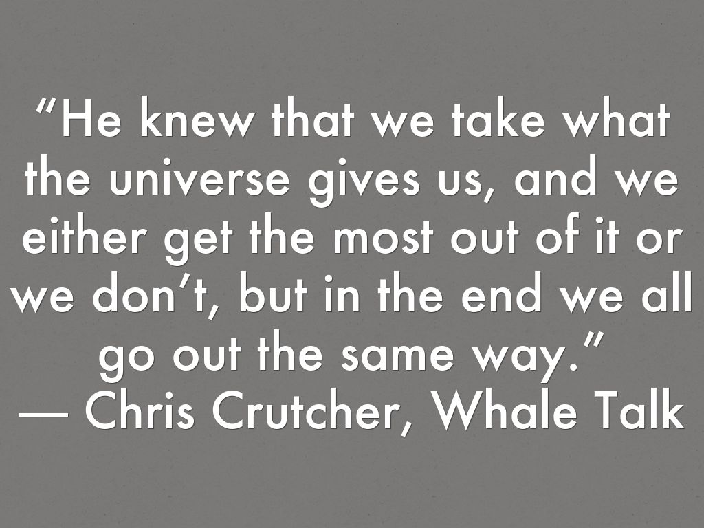 “He knew that we take what the universe gives us, and we either get the most out of it or we don’t, but in the end we all go out the same way.”