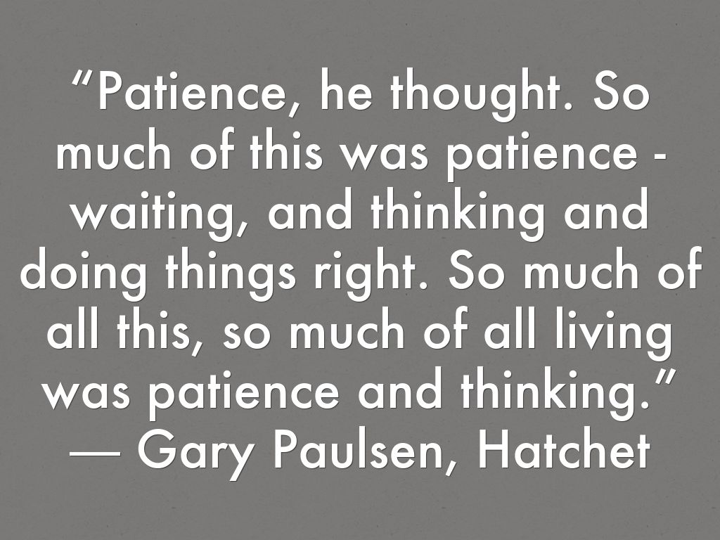“Patience, he thought. So much of this was patience - waiting, and thinking and doing things right. So much of all this, so much of all living was patience and thinking.”