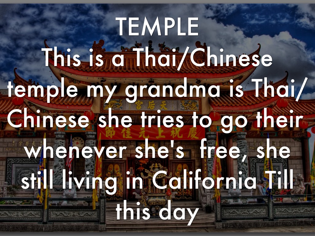 TEMPLE This is a Thai/Chinese temple my grandma is Thai/Chinese she tries to go their whenever she's free, she still living in California Till this day